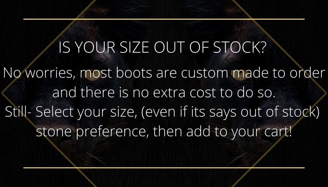 This has been a long time in the making, and folks we did not skimp, not even just a little. Featuring burly hand stitched Vibram soles, our Gunslinger boots are the ultimate in rugged wear-all style. These boots are bullet-proof elegance itself, featuring two tone top grain leathers as well as oxford style perforation, you're going to wear them everywhere and they will never let you down. Each boot comes with its own Stone shield, which can be customized to wear in the back, on either side or the front. Each boot features hand-cut all leather inner and outer with some canvas on the inside for extra protection and wicking, available in every size, customs available. Don’t see your size in stock? No worries, most boots are custom made to order and there is no extra cost to do so. Click here to order your size/custom boot.